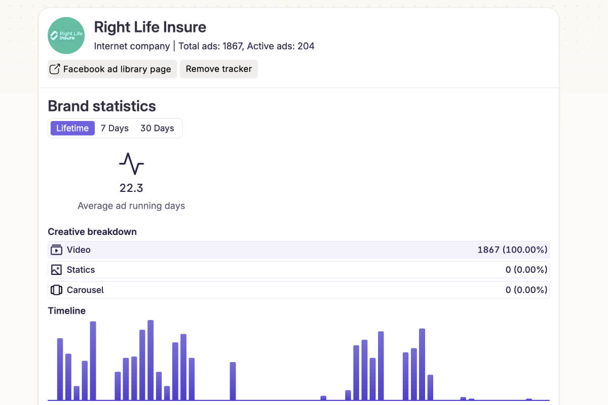 Average running days. Understand which ads stick around (a strong hint of what’s working).